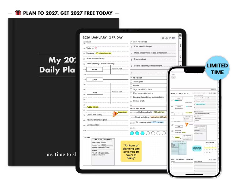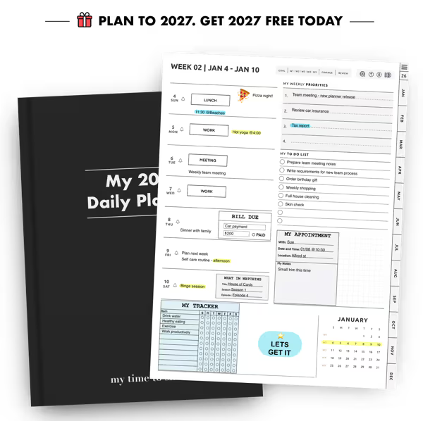- Option of Sunday Start or Monday Start Daily Planner (both included)